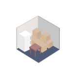 It fits furnishings of a mid-sized bedroom, including a queen-sized bed, a dresser, a TV and several small to medium-sized boxes.